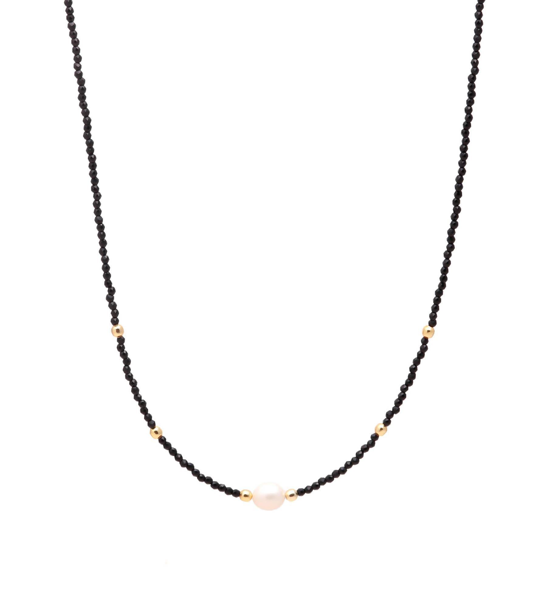 Experience the protective energy of black spinel paired with luminous pearl in this handcrafted necklace designed to empower your spirit and elevate your style.
