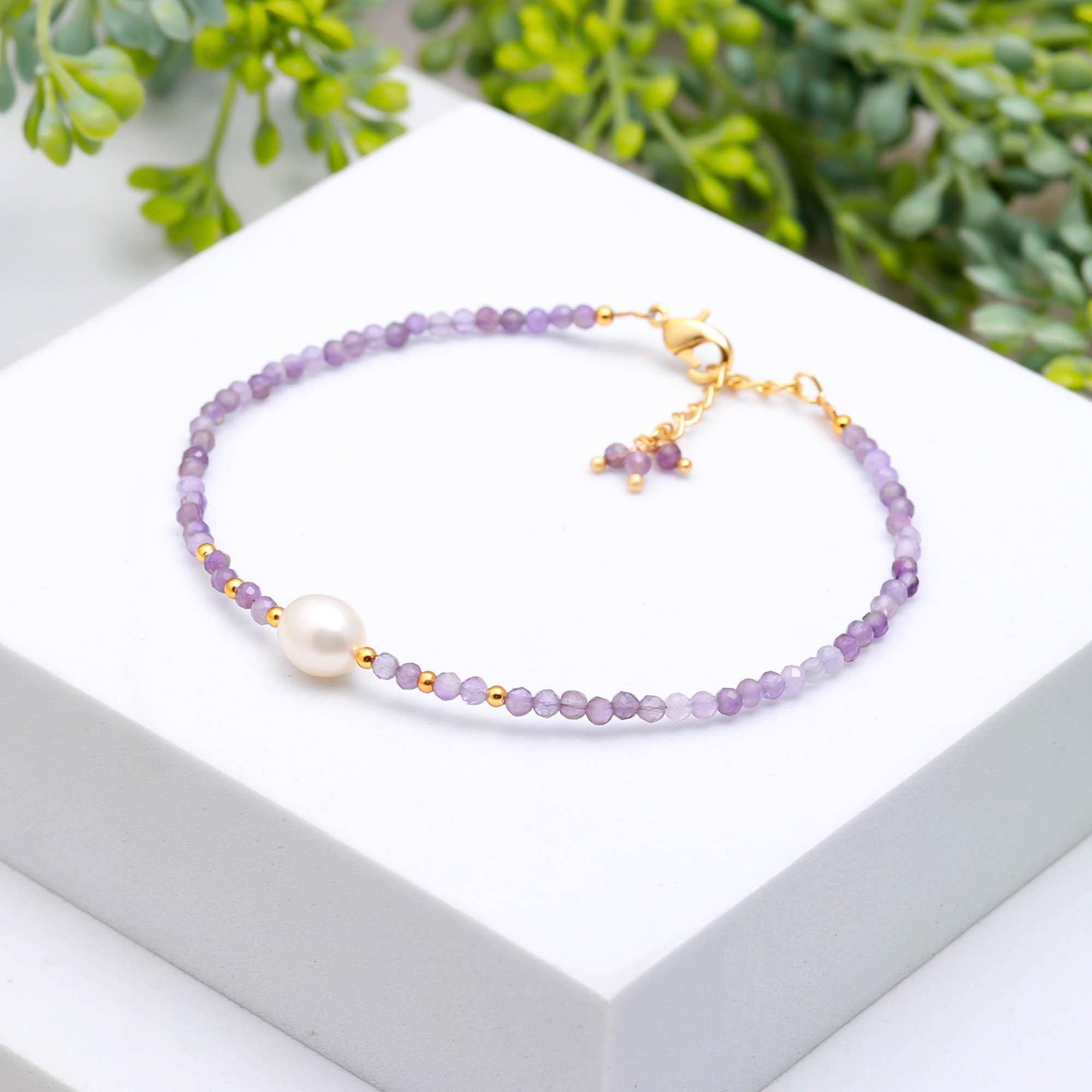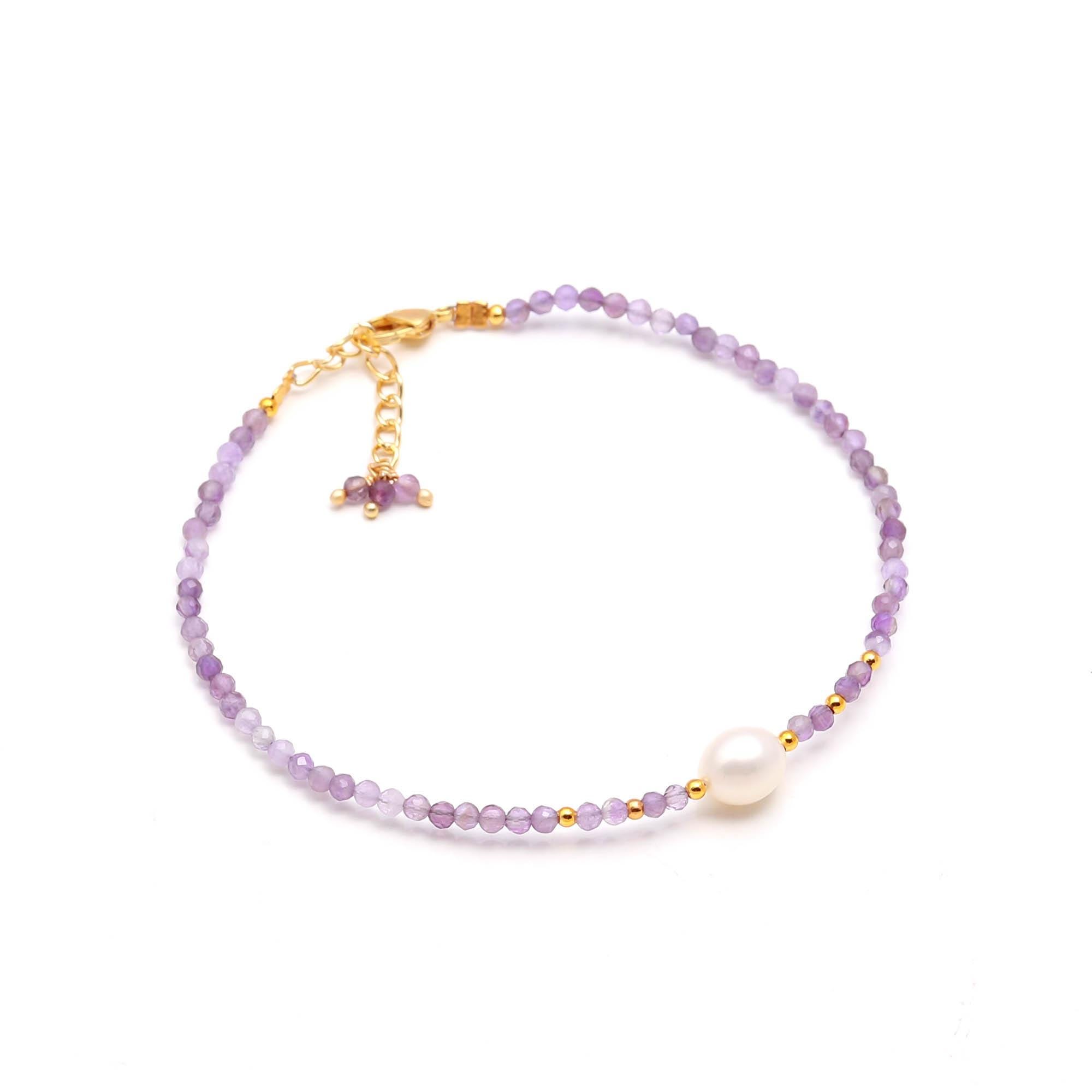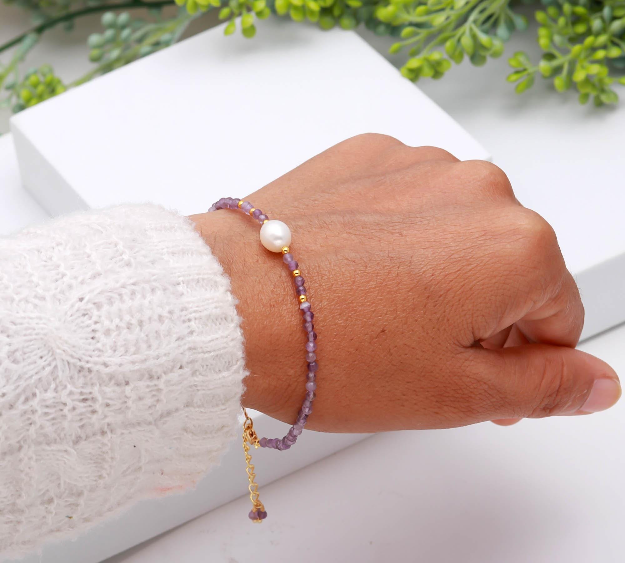 Gemstone size: 2.2–2.5 mm faceted citrine beads Accent size: 2 mm polished brass balls Centerpiece: Genuine freshwater pearl Metal: 18k gold plated brass Length: Adjustable 7 + 1 inch Technique: Hand-beaded, secure finishing