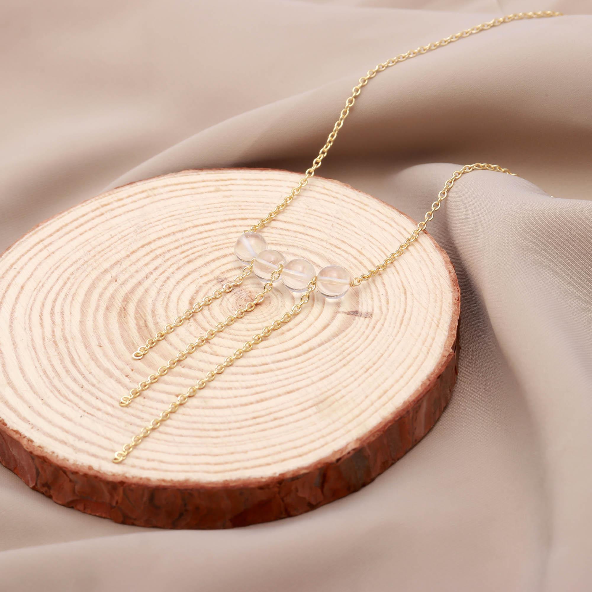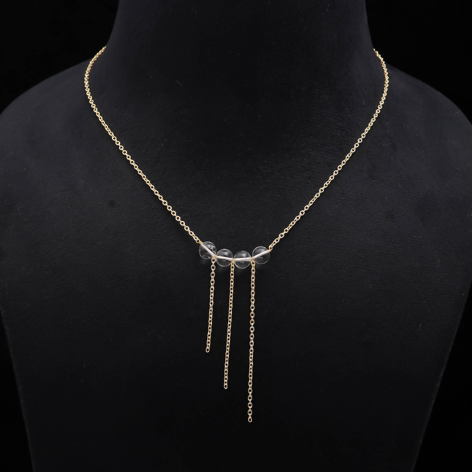 Illuminate your style with the pure energy of the Poshpendant Clear Quartz Drop Chain Necklace. This handcrafted necklace features four natural clear quartz gemstone beads set on a gleaming 18K gold-plated brass chain, accented with elegant drop chains for graceful movement and brilliance. The adjustable 16+2 inch length ensures a flattering fit for every neckline.