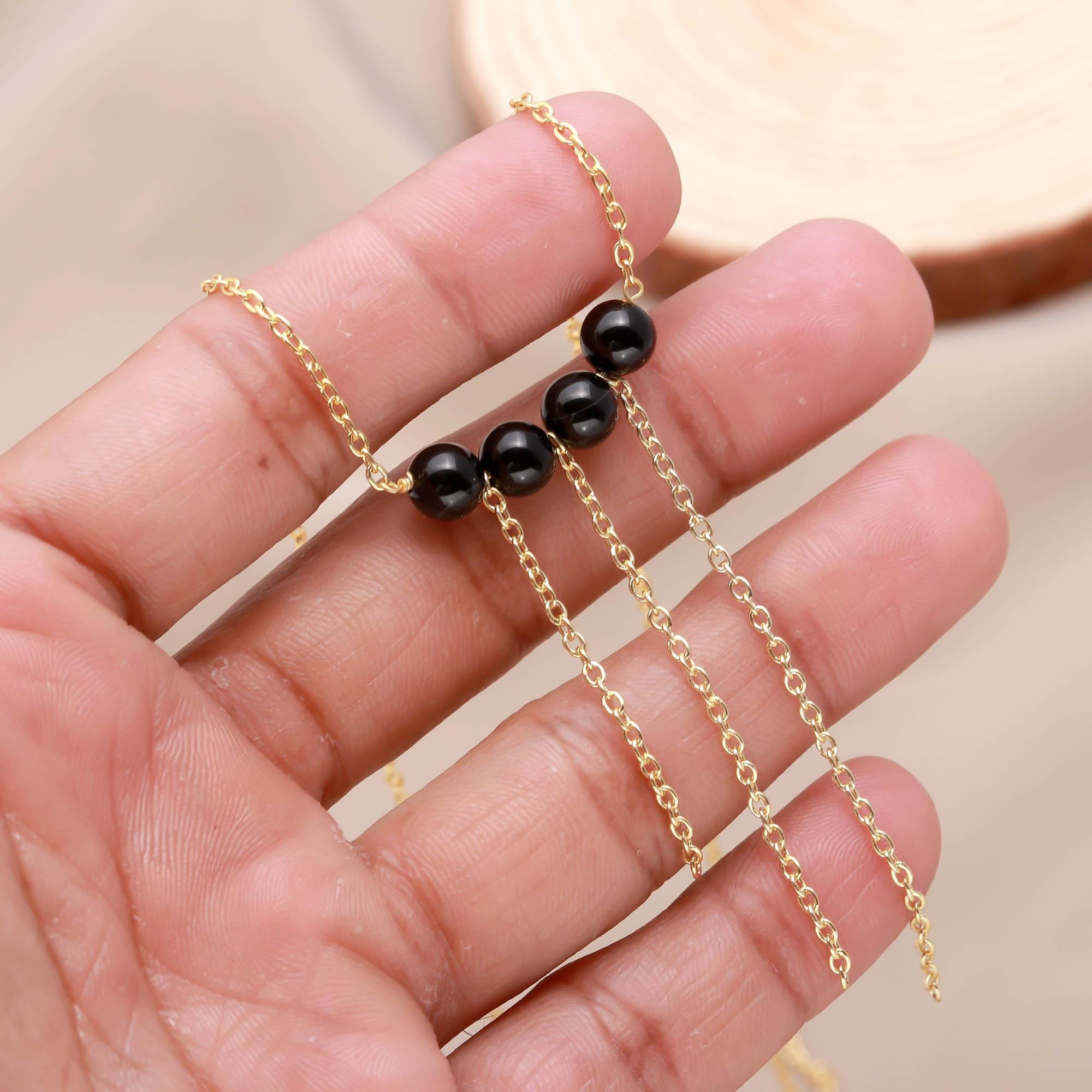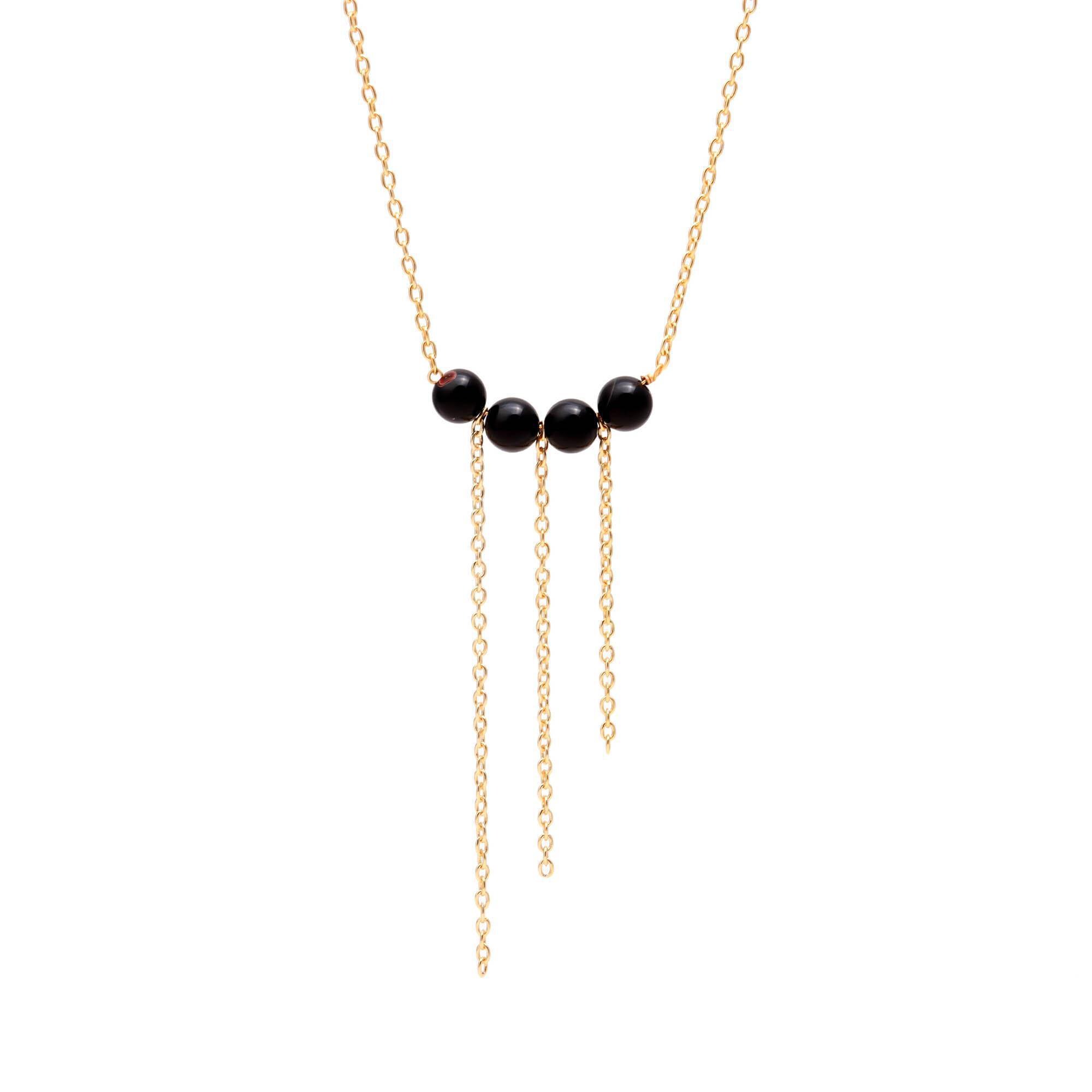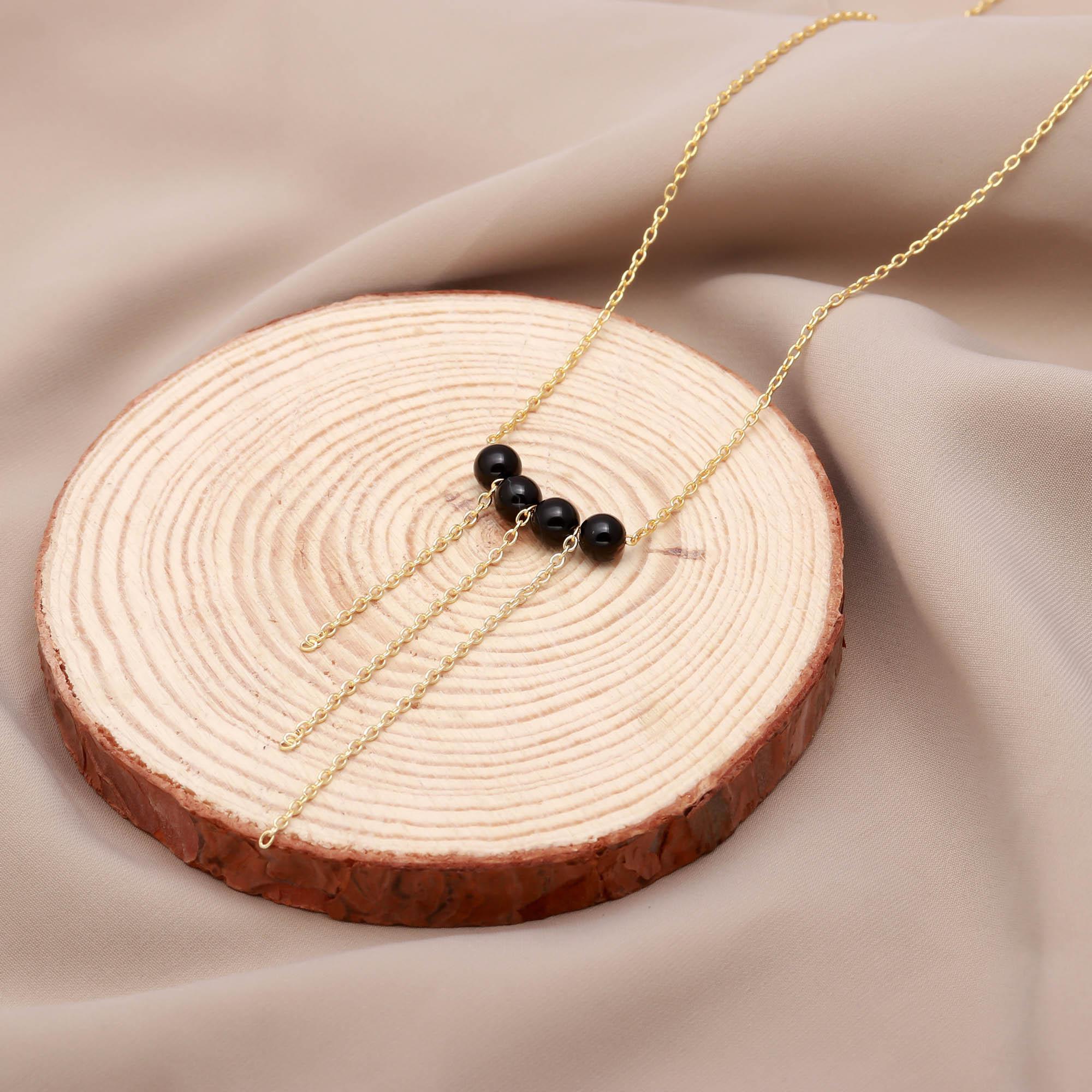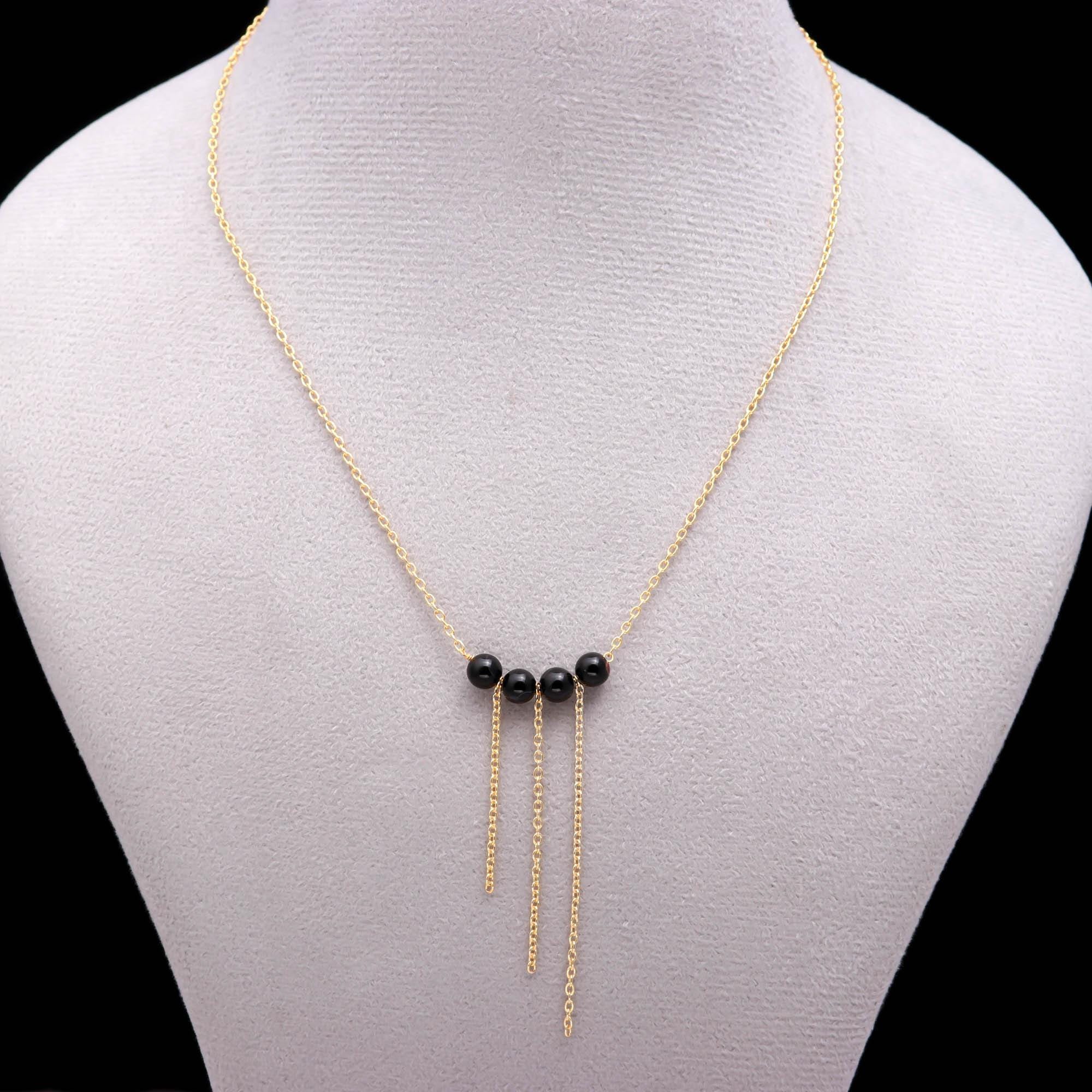 Elevate any look with the modern elegance of the Poshpendant Black Onyx Drop Chain Necklace. This handmade piece features three smooth black onyx gemstones anchored on a lustrous 18K gold-plated brass chain, accented with graceful gold chain drops for dramatic, eye-catching movement. The adjustable 16+2 inch length ensures a flattering fit for every neckline, perfectly blending minimalist style with bold design.