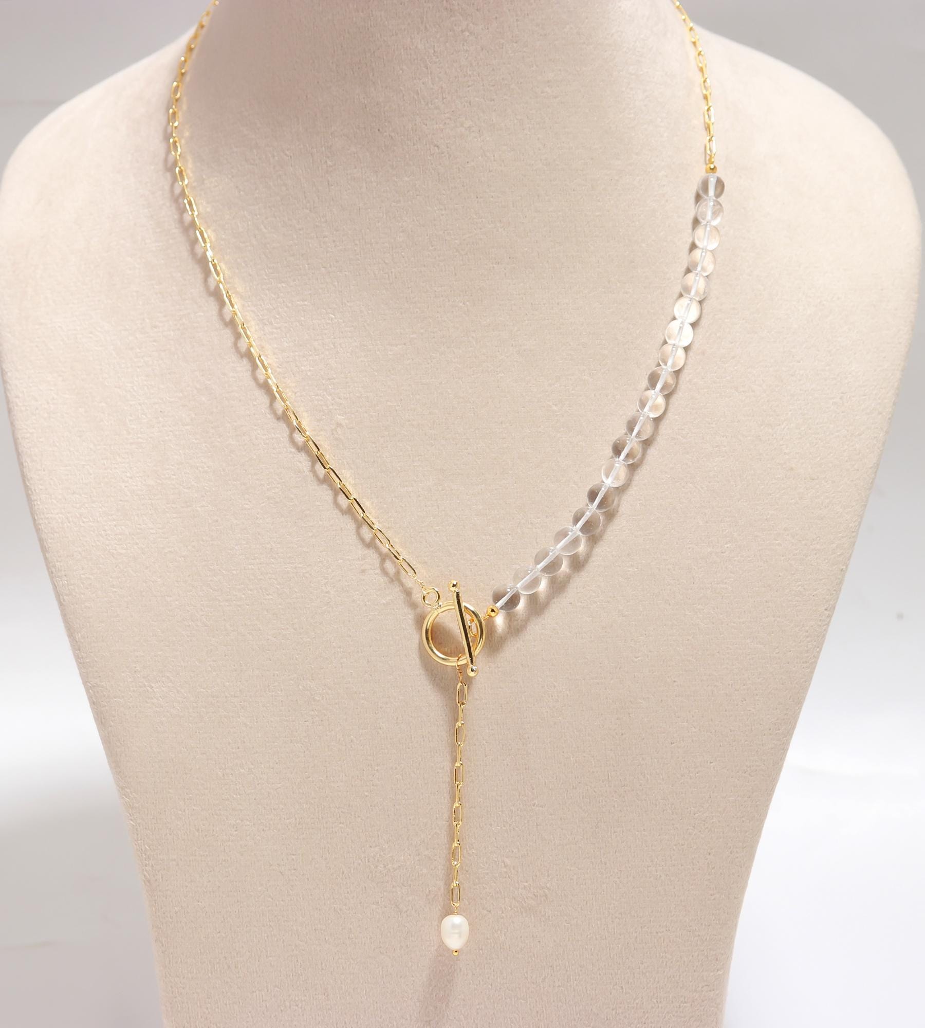 Clear Quartz is revered as a master healer, amplifying intention, clearing negativity, and promoting harmony, clarity, and spiritual growth in daily life. Every necklace is uniquely handcrafted to showcase the radiant purity of natural stones and pearls.