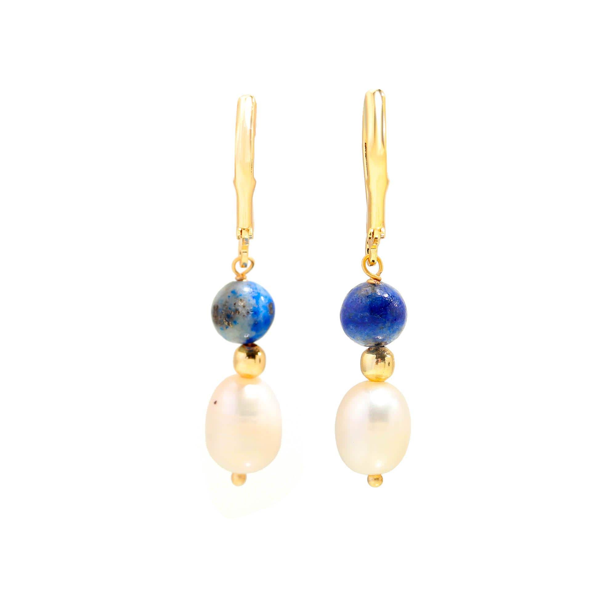 Lapis Lazuli is highly valued for fostering wisdom, truth, and harmony, while pearls add a classic touch of refinement and purity. Each pair is crafted to highlight the natural beauty and color variations in both gemstone and pearl.