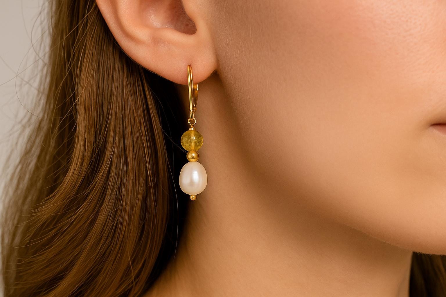 Citrine is loved as a stone of joy, abundance, and positivity, while the pearl adds a classic touch of purity and elegance. Every pair is thoughtfully handmade, with natural gemstone and pearl variations for unique beauty.