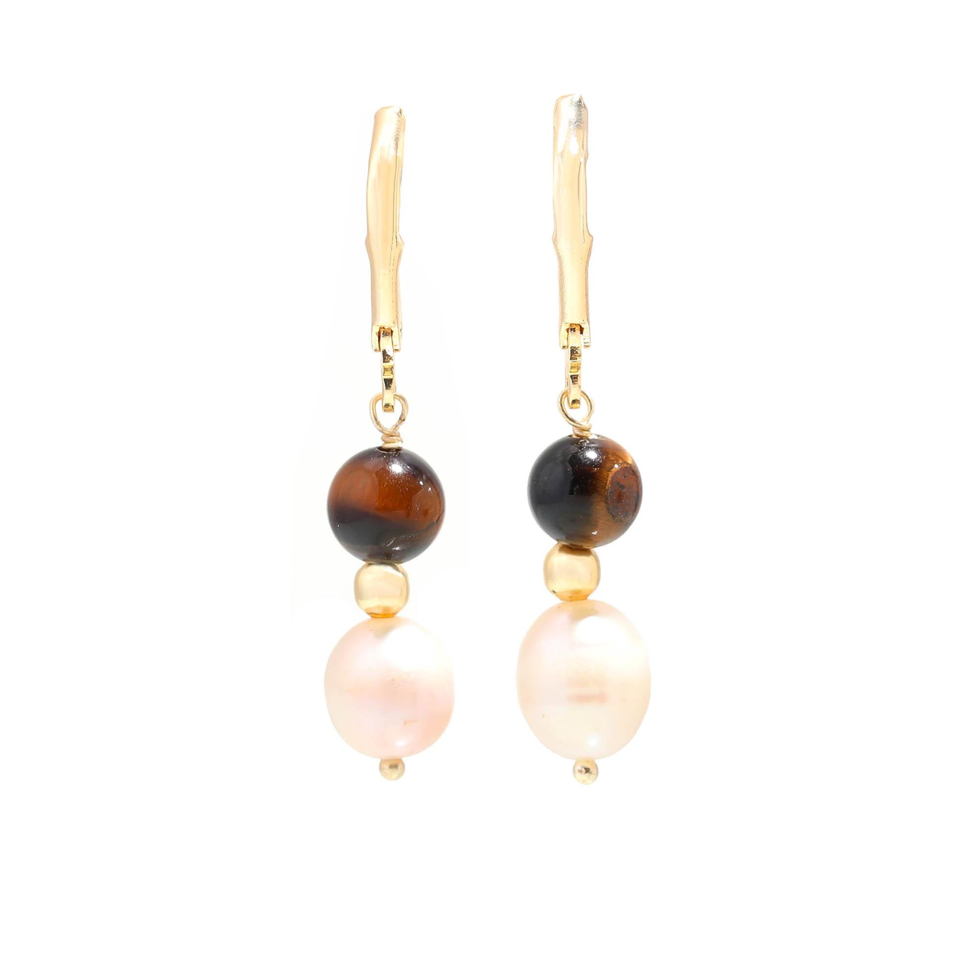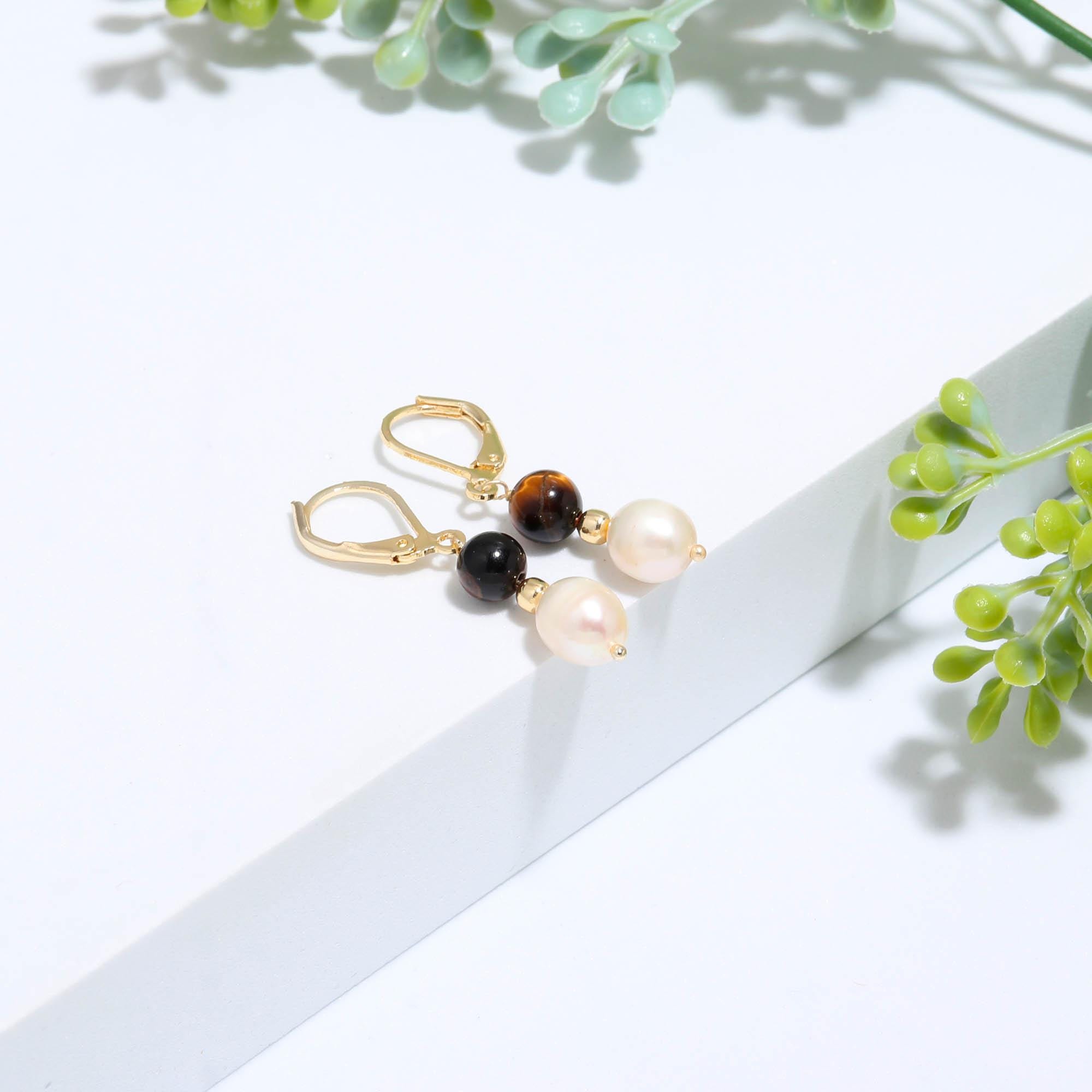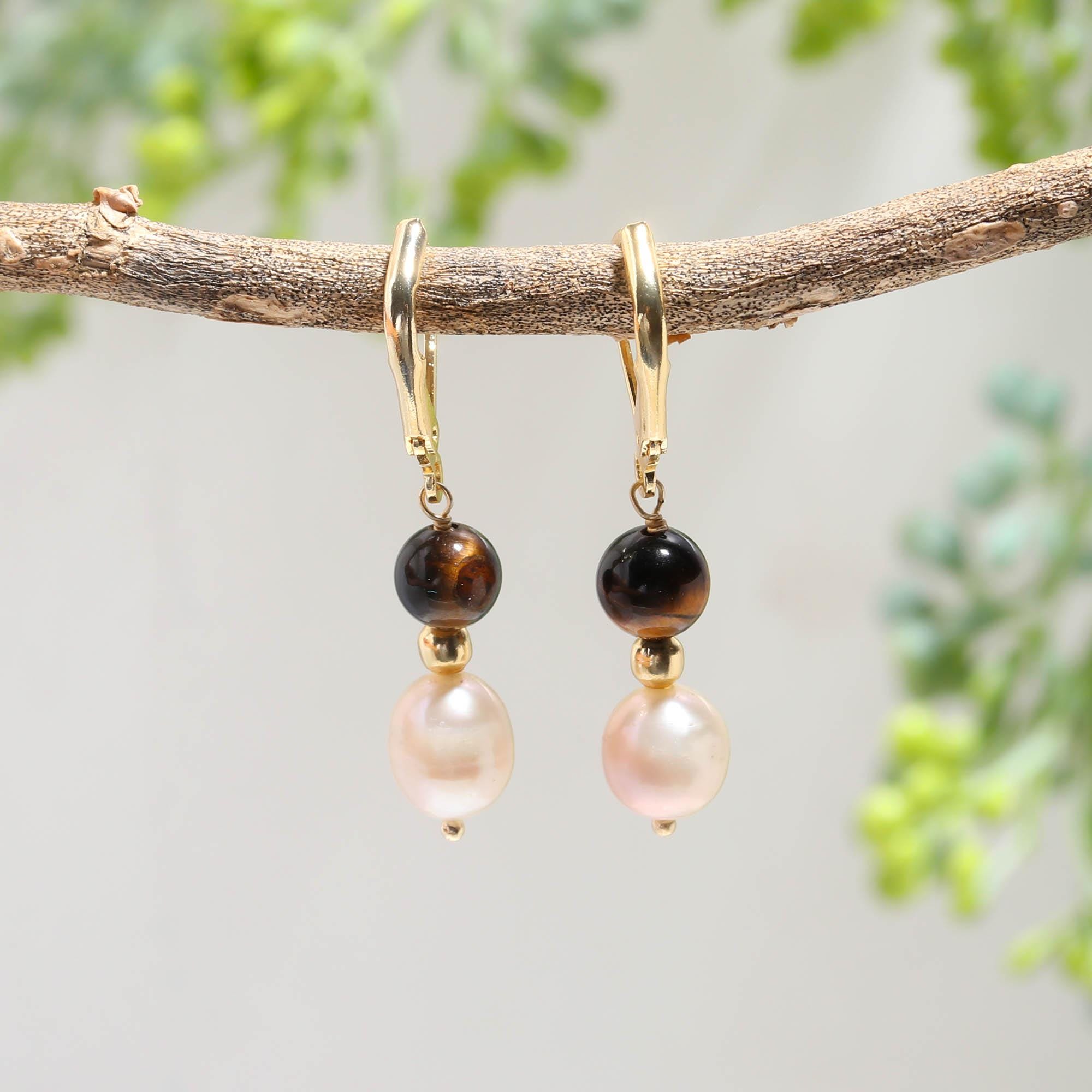 Tiger Eye is revered for strength, protection, and confidence—its chatoyant golden bands inspire motivation and grounding for the wearer. Each pair is skillfully handcrafted, highlighting the rich shimmer and natural variation of every stone and pearl.