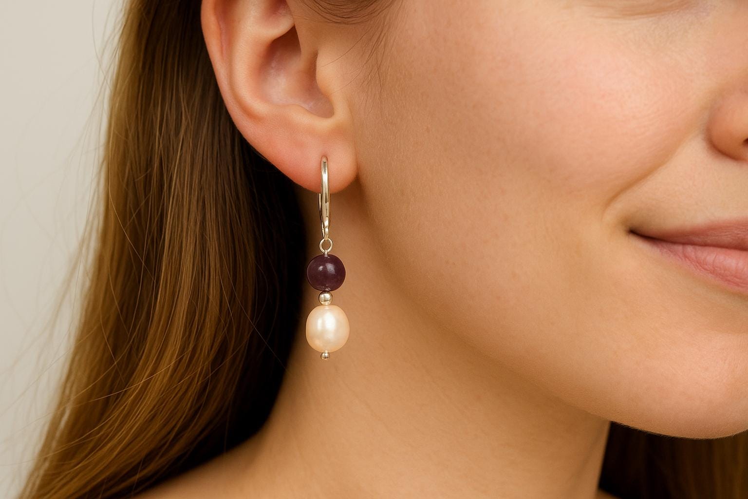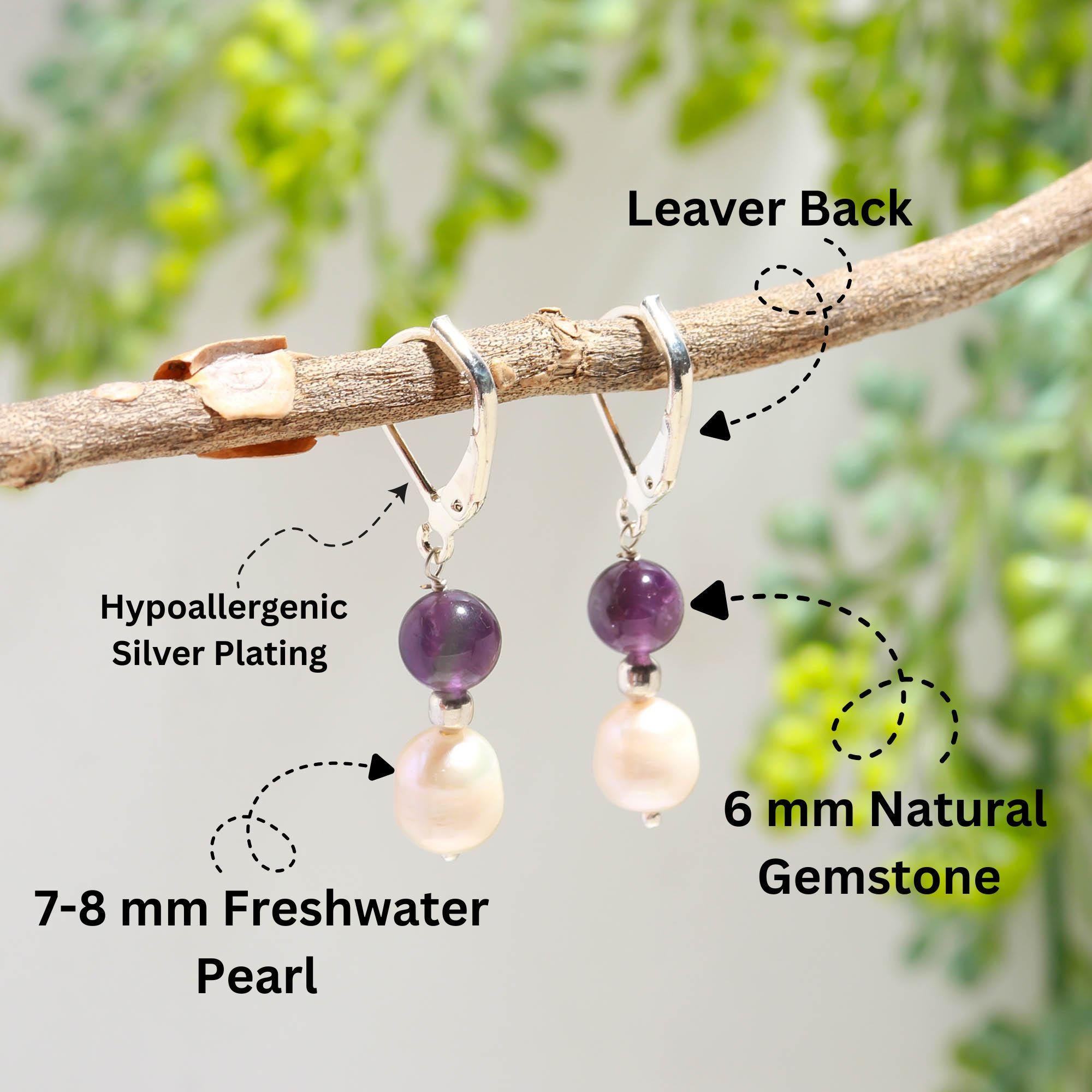 Amethyst is cherished for promoting clarity, balance, and soothing energy, while pearls add a timeless hint of elegance and grace. Each pair is handcrafted, showcasing variations in gemstone and pearl for a uniquely beautiful earring.