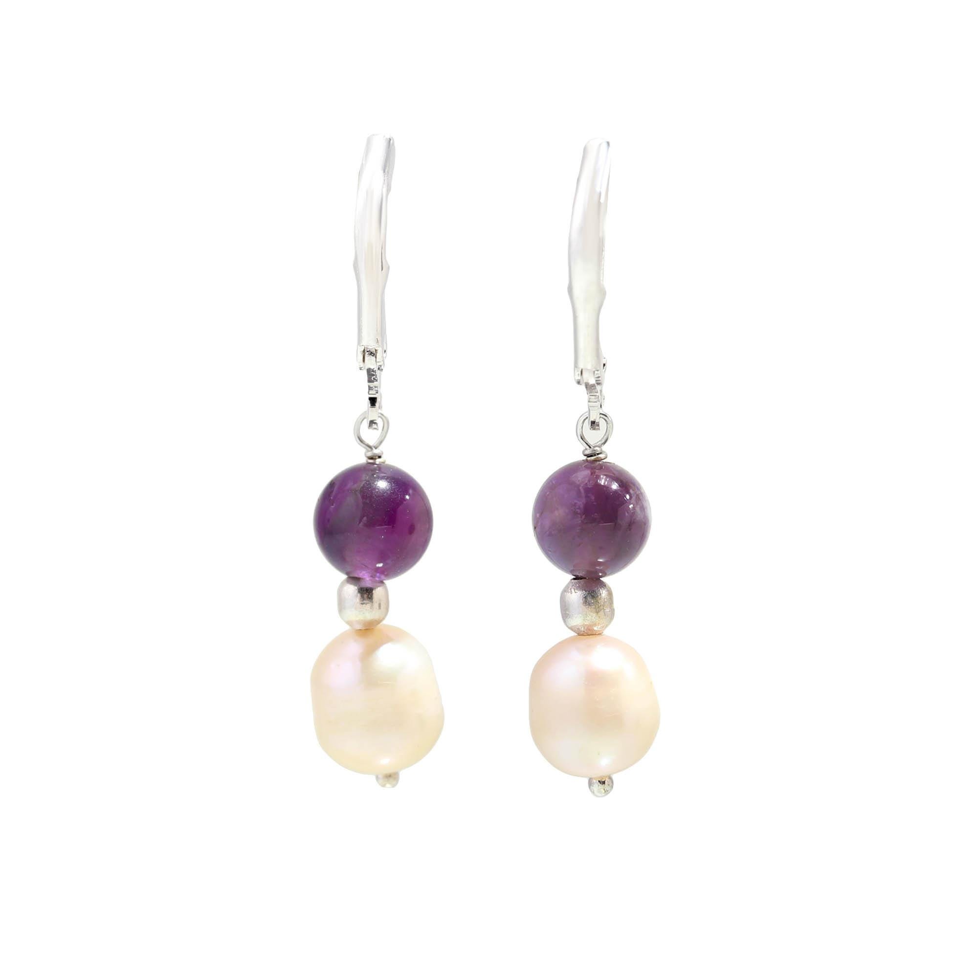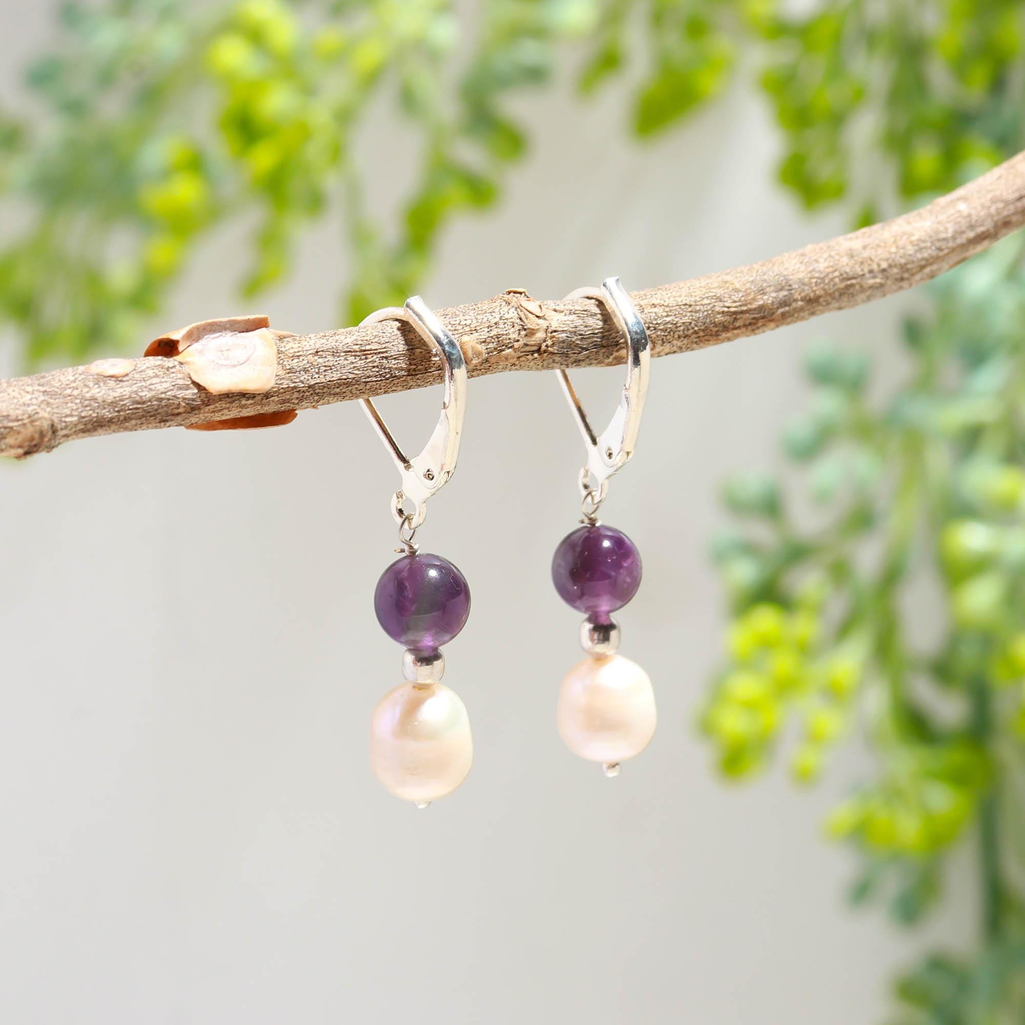 A thoughtful gift for her, these earrings combine modern silver shine, calming amethyst, and classic pearl charm—perfect for everyday wear or special occasions.