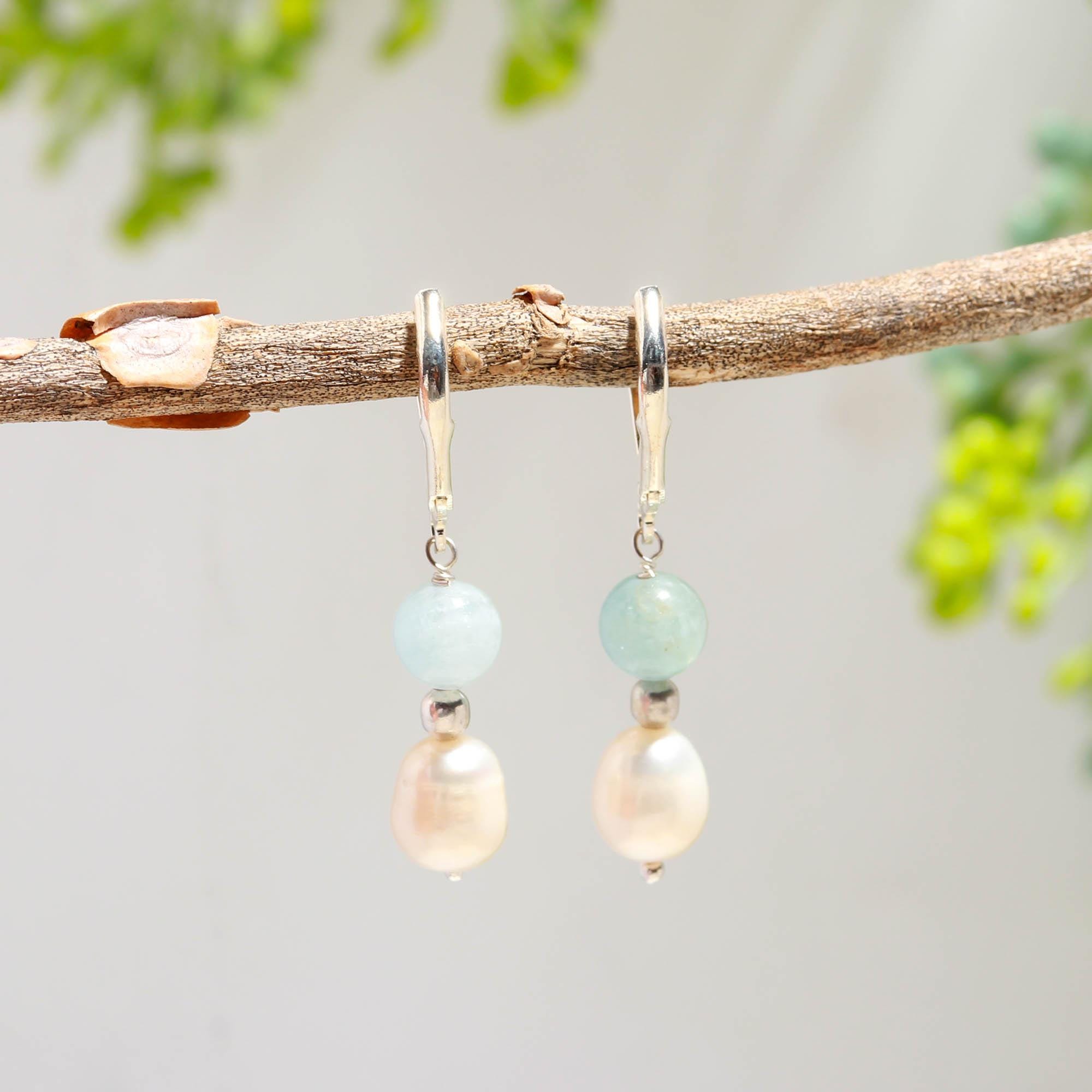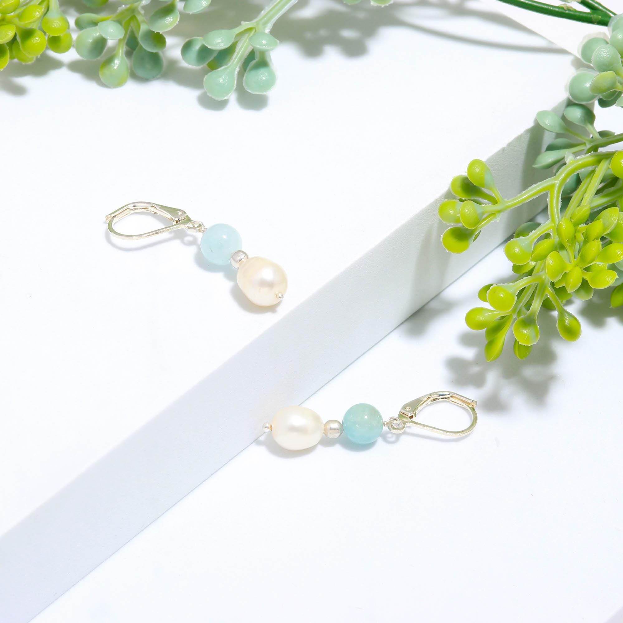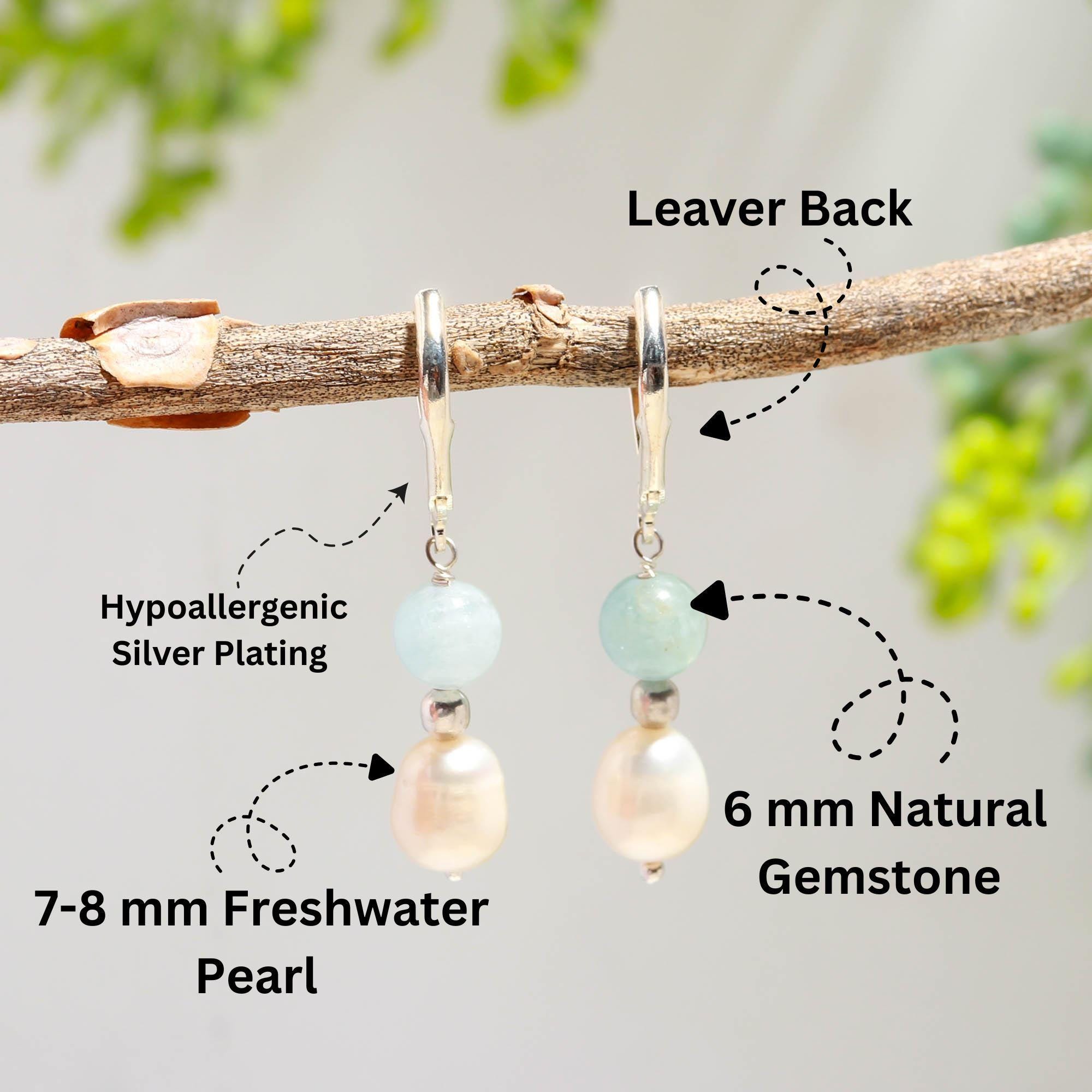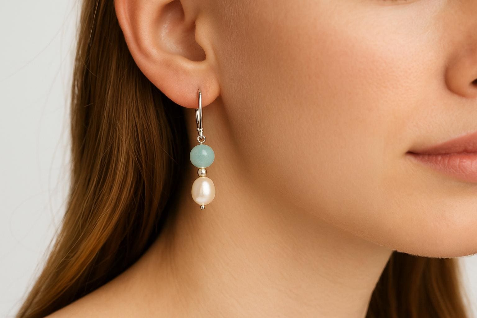 A thoughtful gift for her, these earrings blend tranquil crystal energy, fresh pearl, and modern silver shine—ideal for daily grace or special occasions.