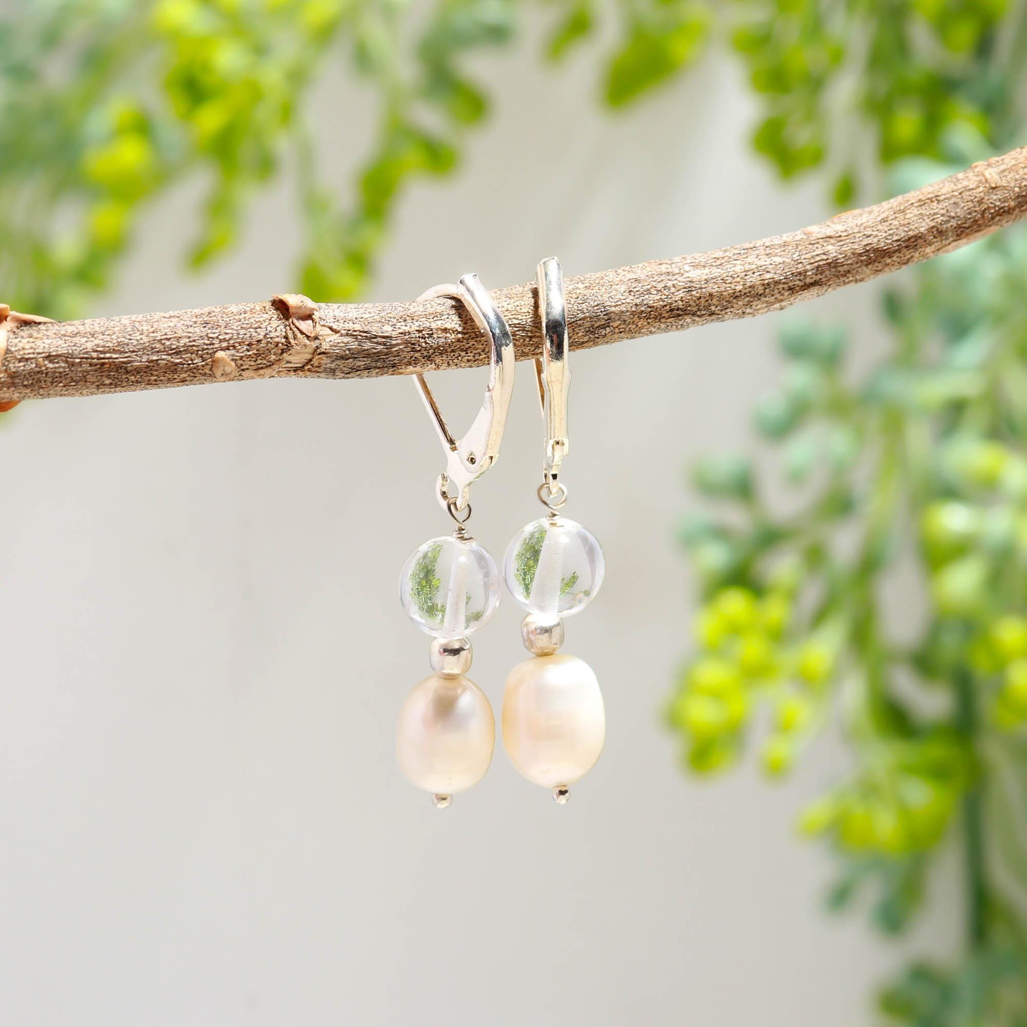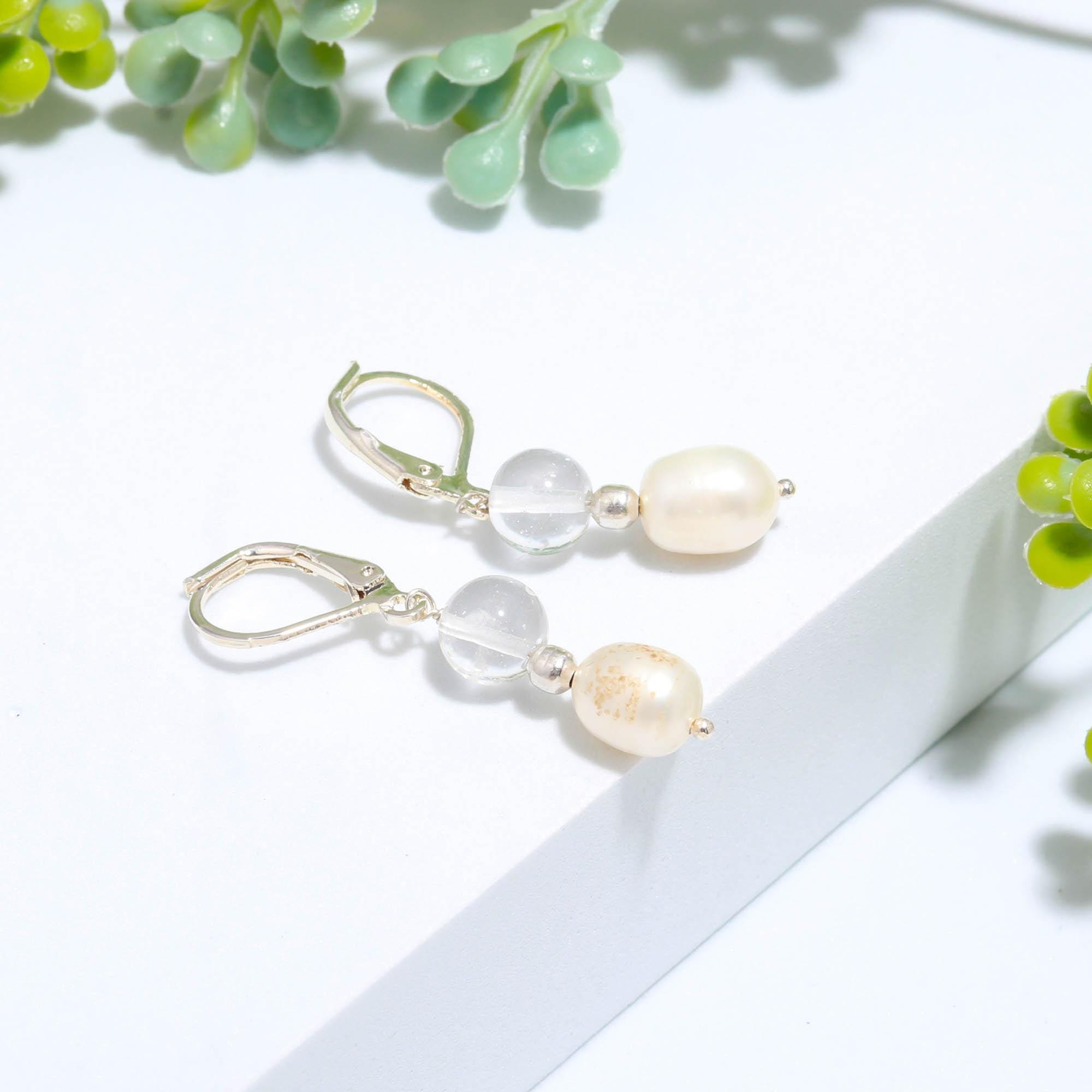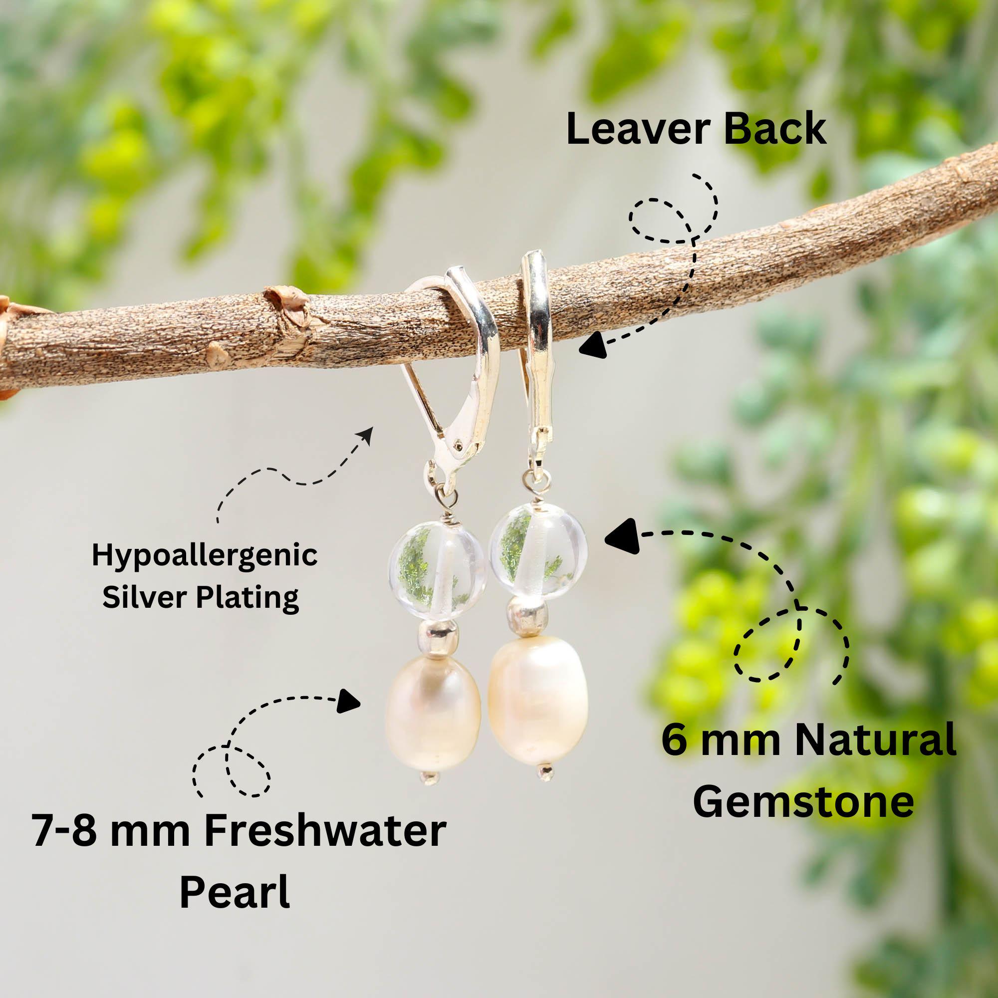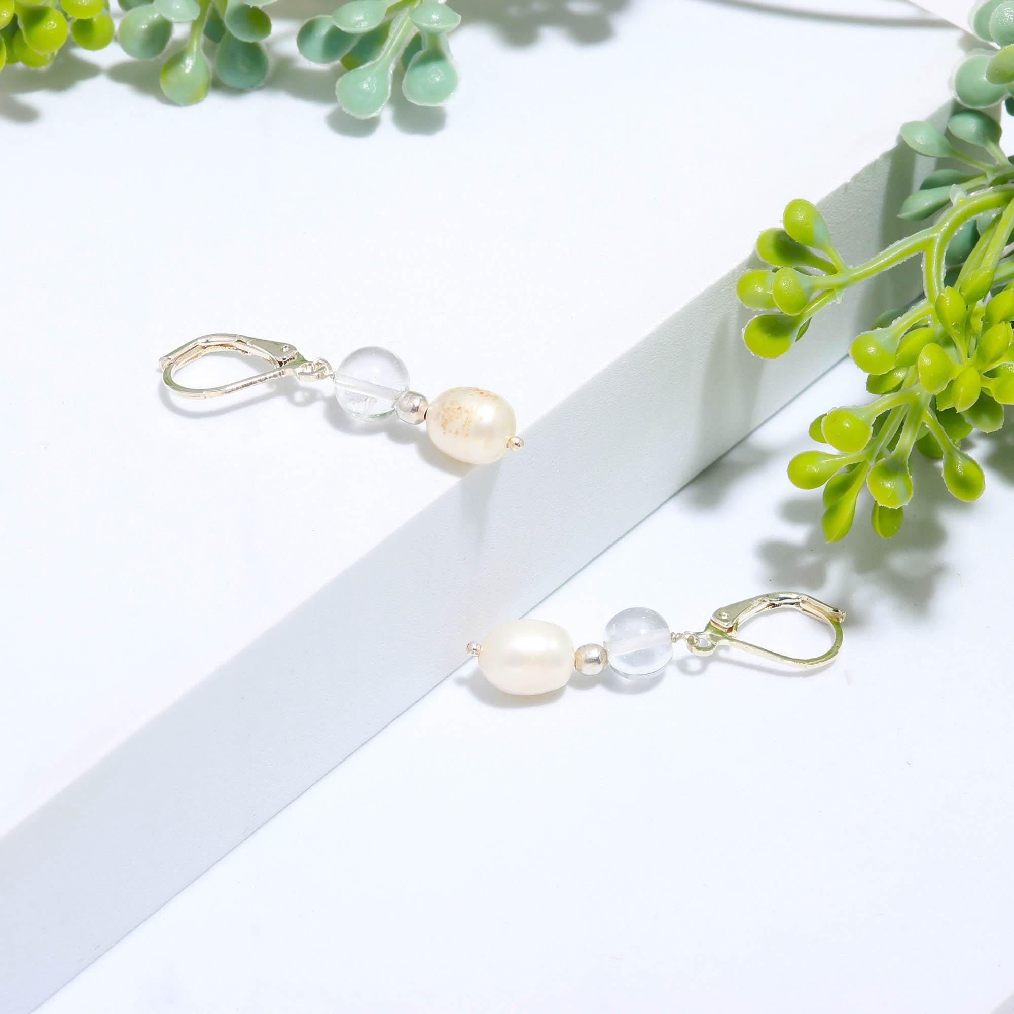 Clear quartz is celebrated for amplifying positive energy, clarity, and wellness, while pearls provide classic elegance and purity. Each pair is artisan crafted to showcase the natural brilliance and harmony of quartz and pearls.