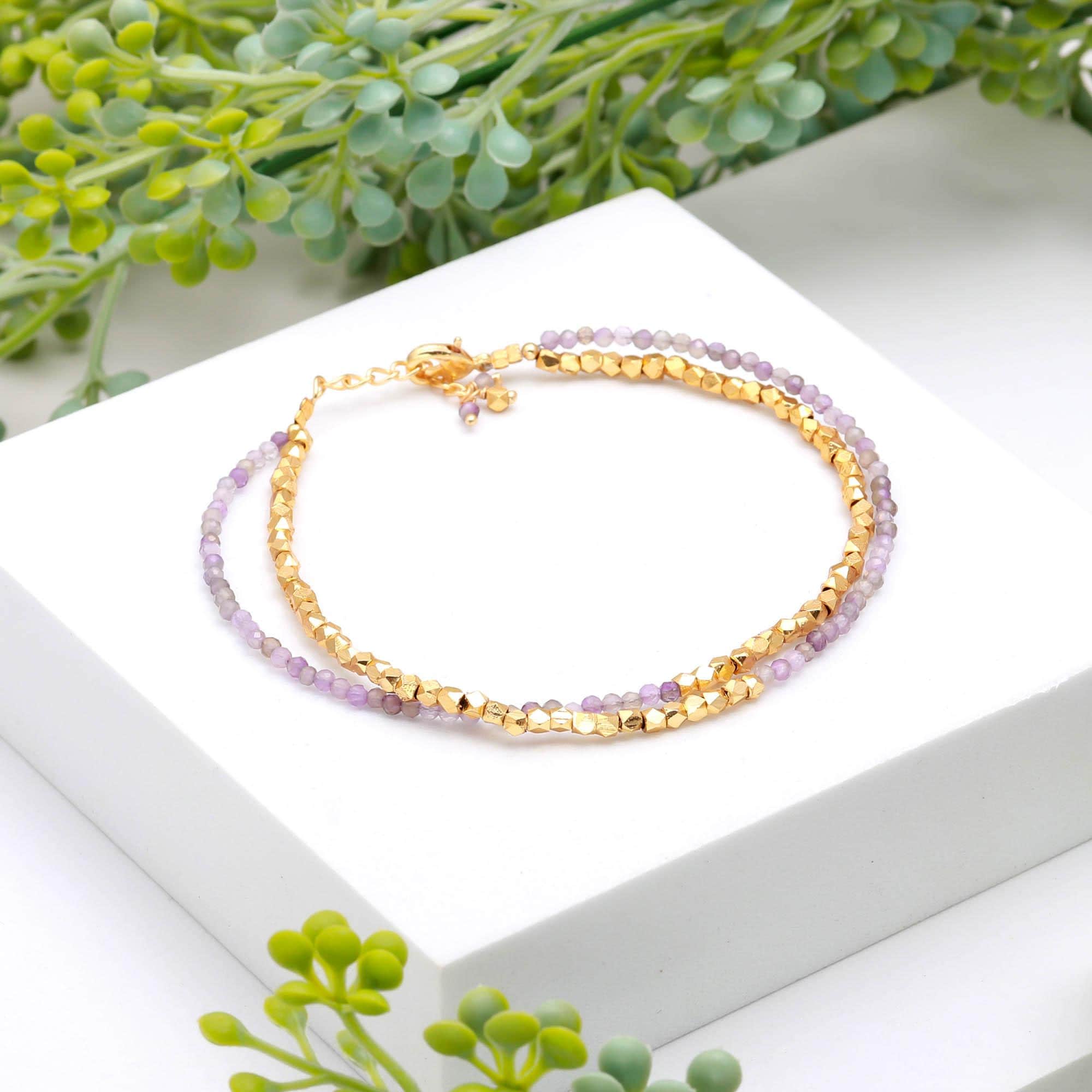 Handmade Amethyst bracelet crafted with fine, dainty beads for a calming and elegant everyday look. Lightweight, minimalist, and perfect for stacking with your favorite bracelets. A thoughtful gift for birthdays, anniversaries, and spiritual occasions.