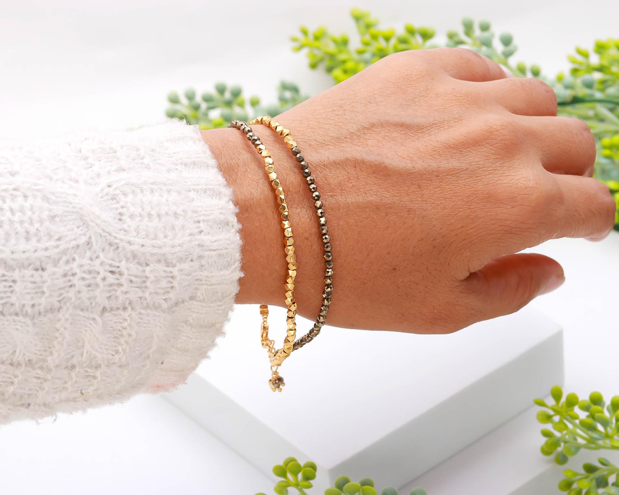 Handmade Pyrite bracelet crafted with fine, dainty beads for a bold, metallic everyday look. Lightweight, minimalist, and perfect for stacking with your favorite bracelets. A thoughtful gift for birthdays, anniversaries, and special occasions.